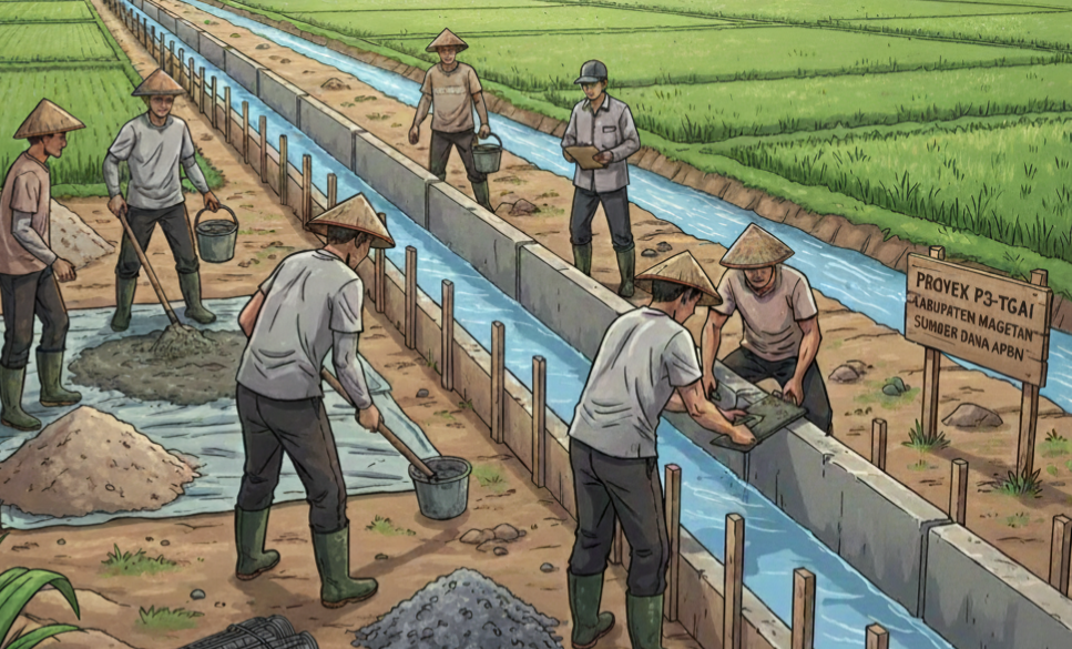 MAGETAN (Lensamagetan.com) – Program Percepatan Peningkatan Tata Guna Air Irigasi (P3-TGAI) tahap kedua kembali digulirkan di Kabupaten Magetan. Program yang didanai Anggaran Pendapatan dan Belanja Negara (APBN) ini bertujuan membantu pembangunan infrastruktur irigasi yang dilaksanakan secara padat karya tunai dan swakelola oleh masyarakat petani.