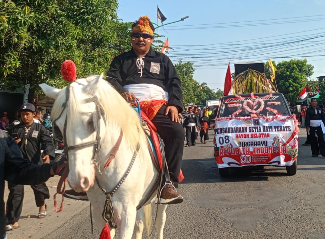 “Semua warga PSHT Rayon Belotan ini bersama-sama ikut meramaikan gelaran Karnaval yang digelar oleh desa dalam rangka HUT Kemerdekaan RI,” kata Agus.