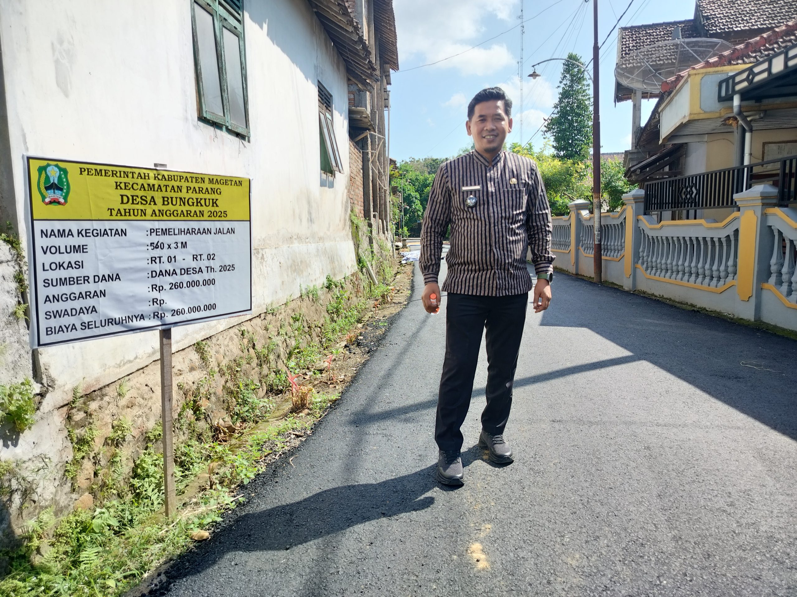 MAGETAN (Lensamagetan.com) – Desa Bungkuk, Kecamatan Parang, Kabupaten Magetan, menunjukkan keberhasilan nyata dalam mengelola dana desa dengan efektif dan terarah. Di bawah kepemimpinan Kepala Desa Munirul Ichwan, alokasi dana desa difokuskan pada pembangunan infrastruktur prioritas, salah satunya melalui rehabilitasi jalan desa menggunakan hotmix.