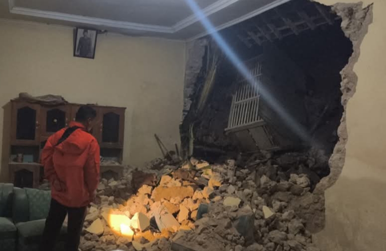 Talud longsor di Kecamatan Poncol membut ruang tamu milik warga jebol.(Lensamagetan.com/Istimewa)