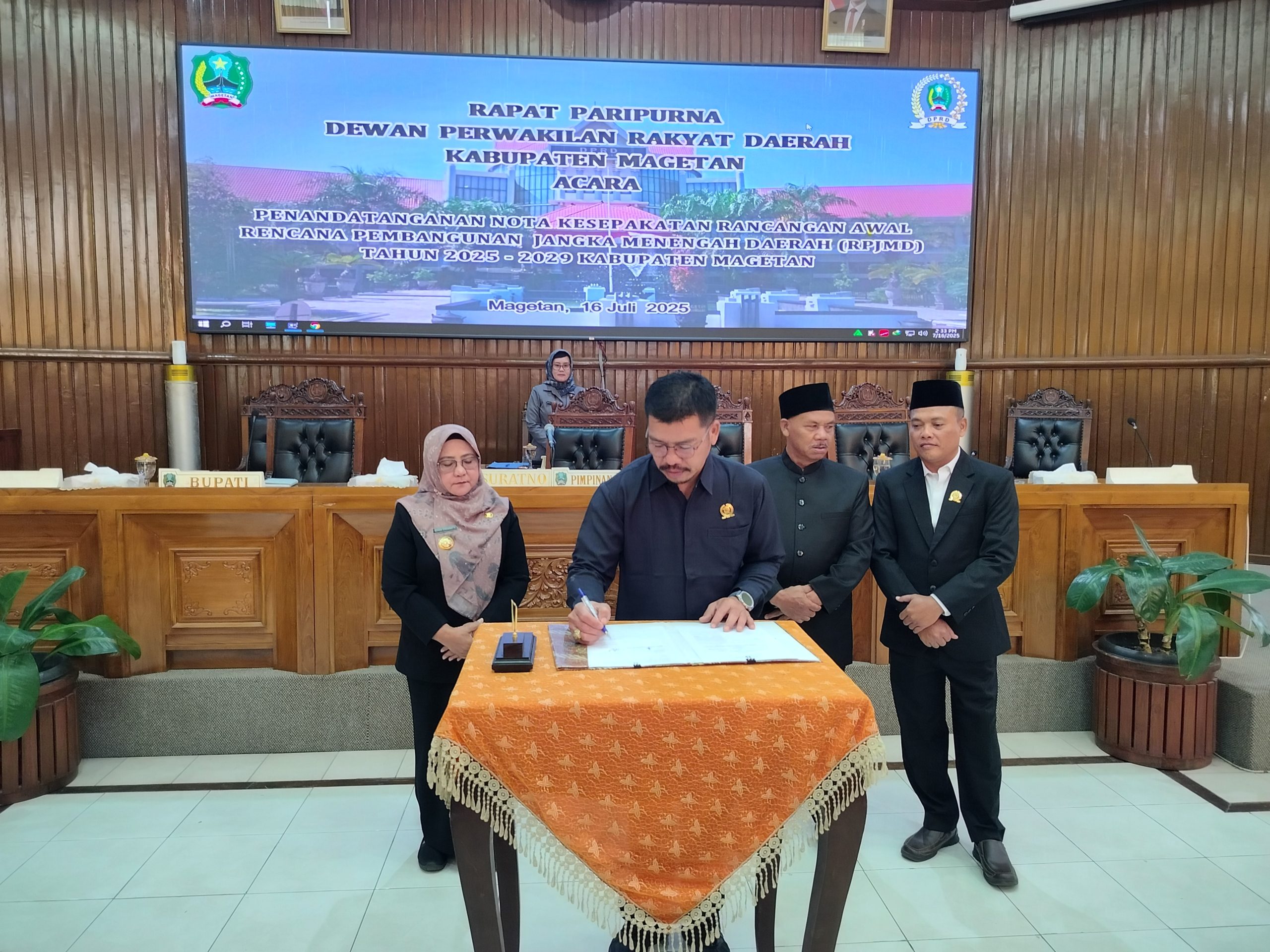 MAGETAN (Lensamagetan.com) – Dewan Perwakilan Rakyat Daerah (DPRD) Kabupaten Magetan menggelar rapat paripurna dengan agenda penandatanganan Nota Kesepakatan Rancangan Awal (Ranwal) Rencana Pembangunan Jangka Menengah Daerah (RPJMD) Kabupaten Magetan Tahun 2025–2029, Rabu (16/7/2025).