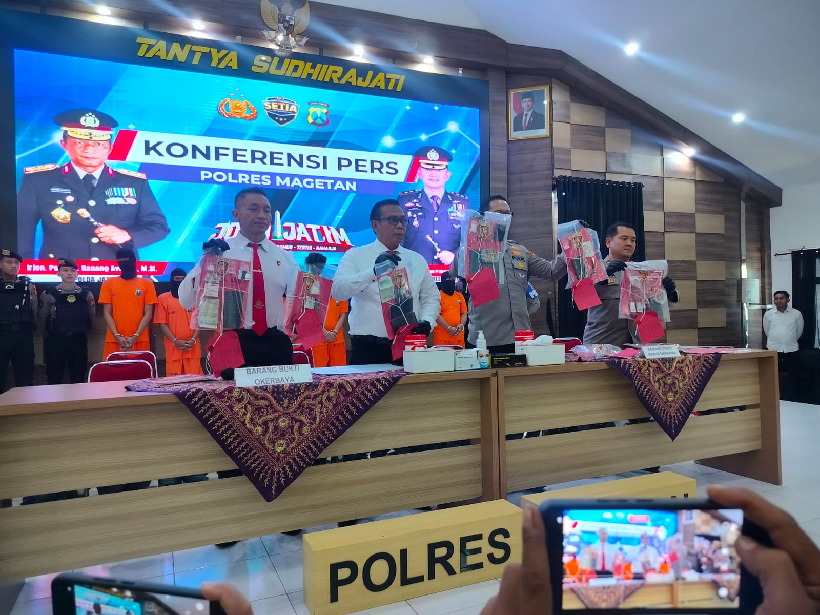 Kapolres Magetan, AKBP Raden Erik Bangun Prakasa dalam konferensi pers menjelaskan, dari hasil operasi tersebut ada 11 orang yang diamankan, dengan rincian 8 orang ditahan di Polres Magetan, 2 orang menjalani rehabilitasi, serta 1 orang di Lapas Magetan.