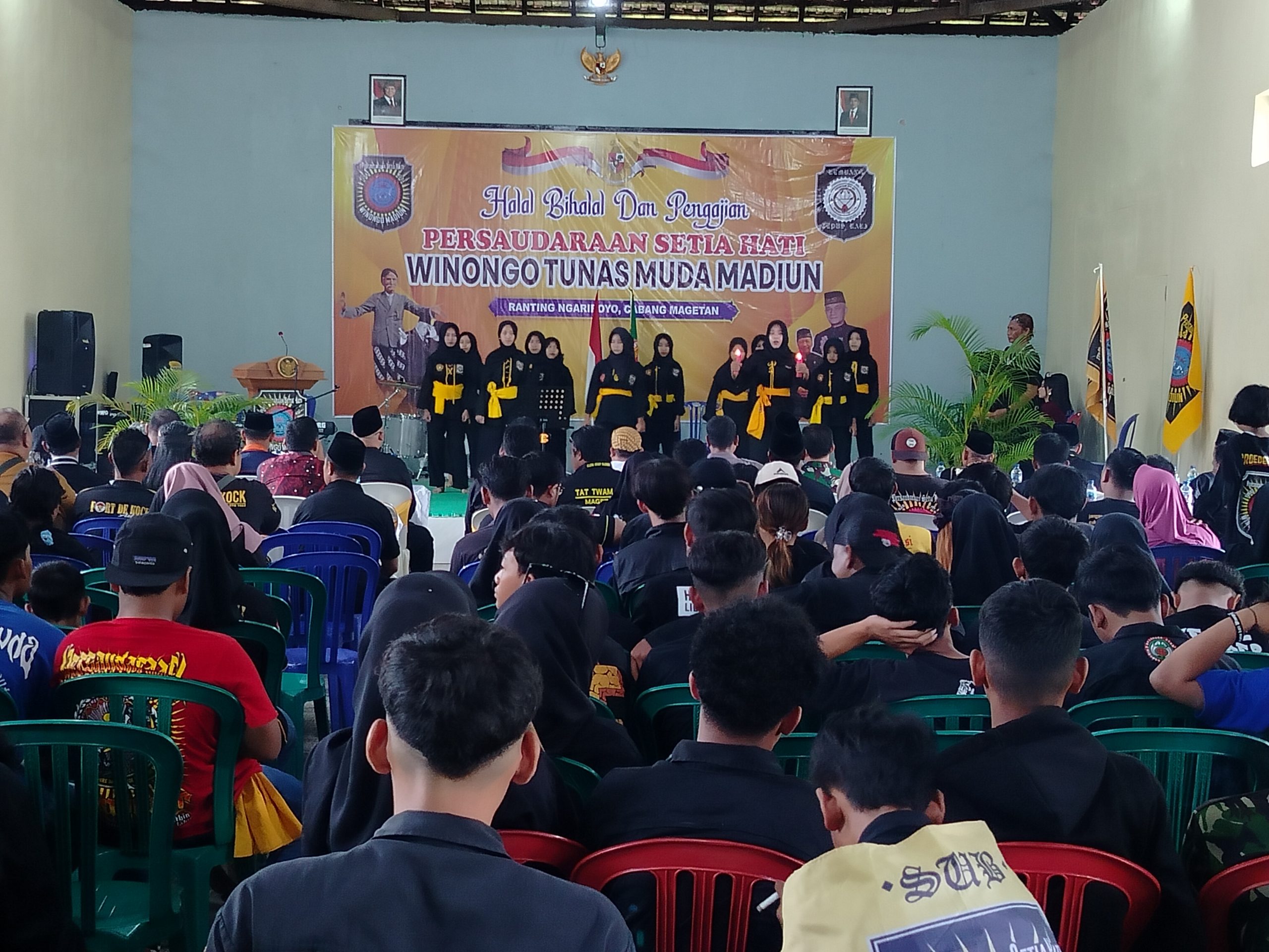 MAGETAN (Lensamagetan.com) – Dengan suasana penuh kehangatan dan kebersamaan pasca Hari Raya Idul Fitri, Persaudaraan Setia Hati Winongo Tunas Muda (PSHWTM) Ranting Ngariboyo, Cabang Magetan menggelar acara halal bihalal dan pengajian yang berlangsung di Balai Pertemuan Desa Ngariboyo, Minggu (20/4/2025).