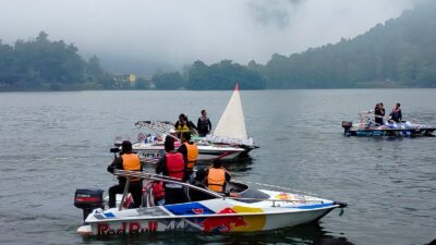 Ratusan warga dan wisatawan tampak memadati area telaga. Mereka larut dalam pertunjukan yang tidak sekadar hiburan, melainkan juga ruang perjumpaan antara budaya, masyarakat, dan alam Sarangan yang sejuk.