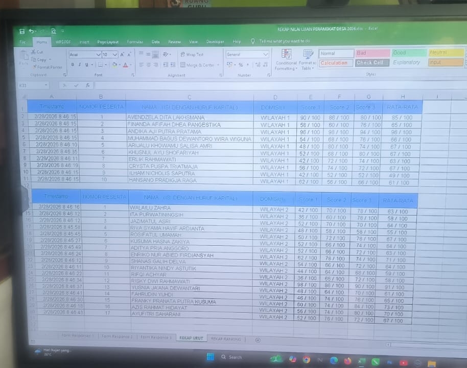 Sebaliknya, dua posisi Kepala Kewilayahan diisi oleh peserta dengan capaian nilai tertinggi. Untuk jabatan Kepala Kewilayahan Dusun Jetis, Andika Aji Putra Pratama menempati peringkat pertama dengan rata-rata nilai 96. Sementara jabatan Kepala Kewilayahan Dusun Ngariboyo diraih Risky Dwi Rahmawati dengan nilai rata-rata 91.