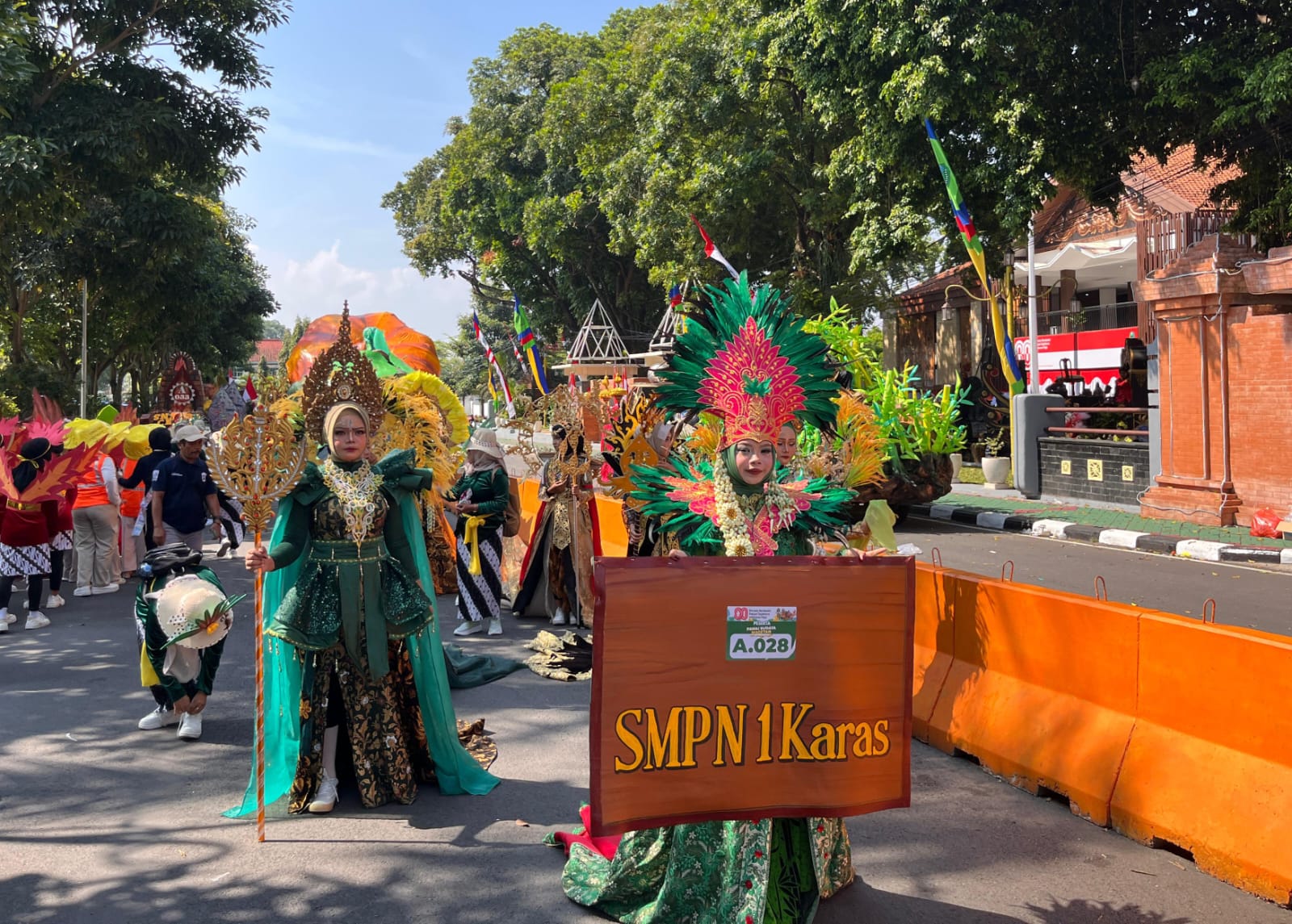 MAGETAN (Lensamagetan.com) – SMP Negeri 1 Karas, Kecamatan Karas, Kabupaten Magetan tampil memukau pada acara Pawai Budaya yang digelar oleh Pemkab Magetan dalam rangka HUT Ke-80 Kemerdekaan Republik Indonesia, Sabtu (23/8/2025).